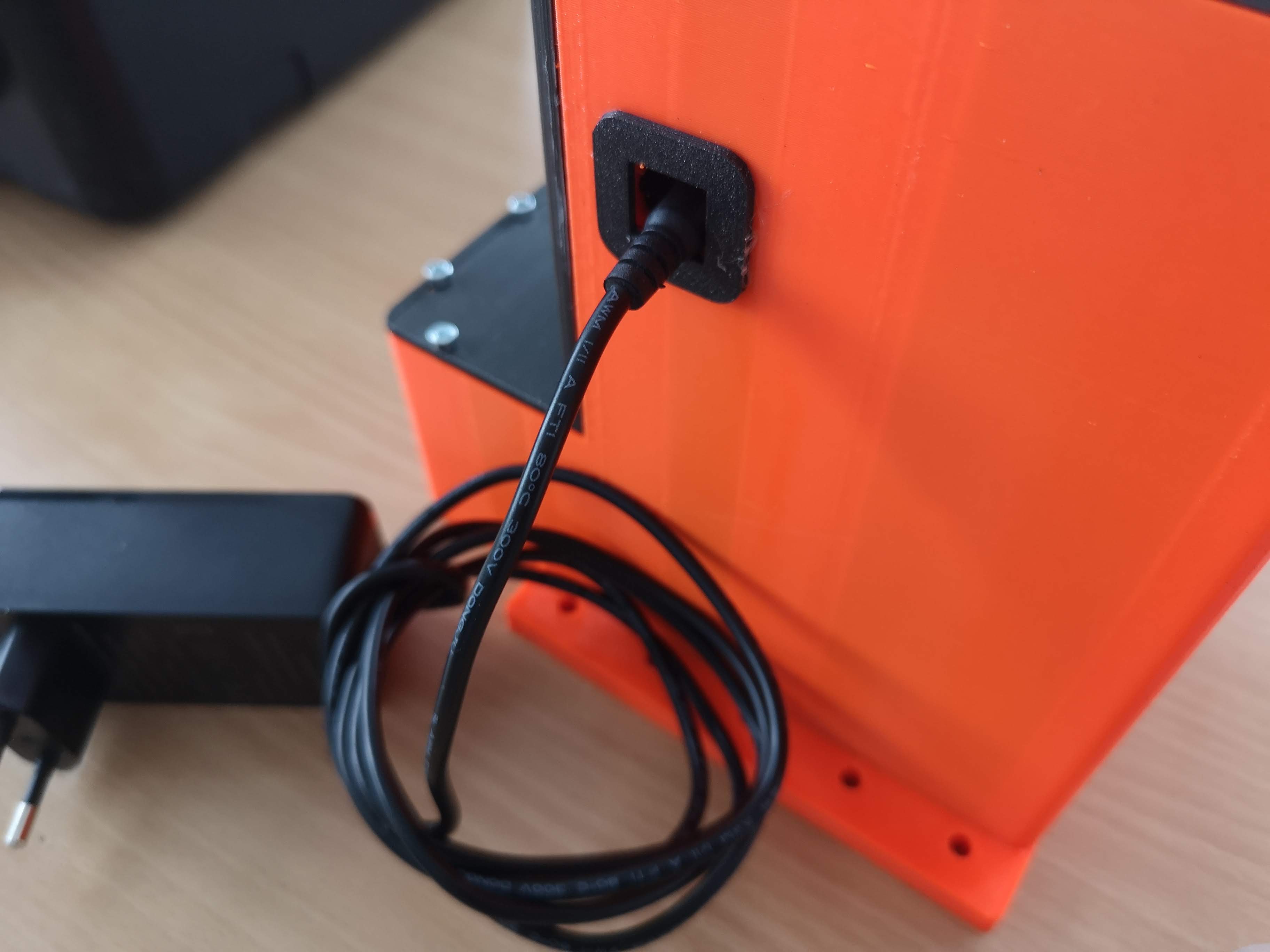First of all we need to wire up the microscope. For this we will start with the 12V power supply. Unfortunately the powersocket is inside the case, hence you have to first eat some candy in order to better find the spot ;-)