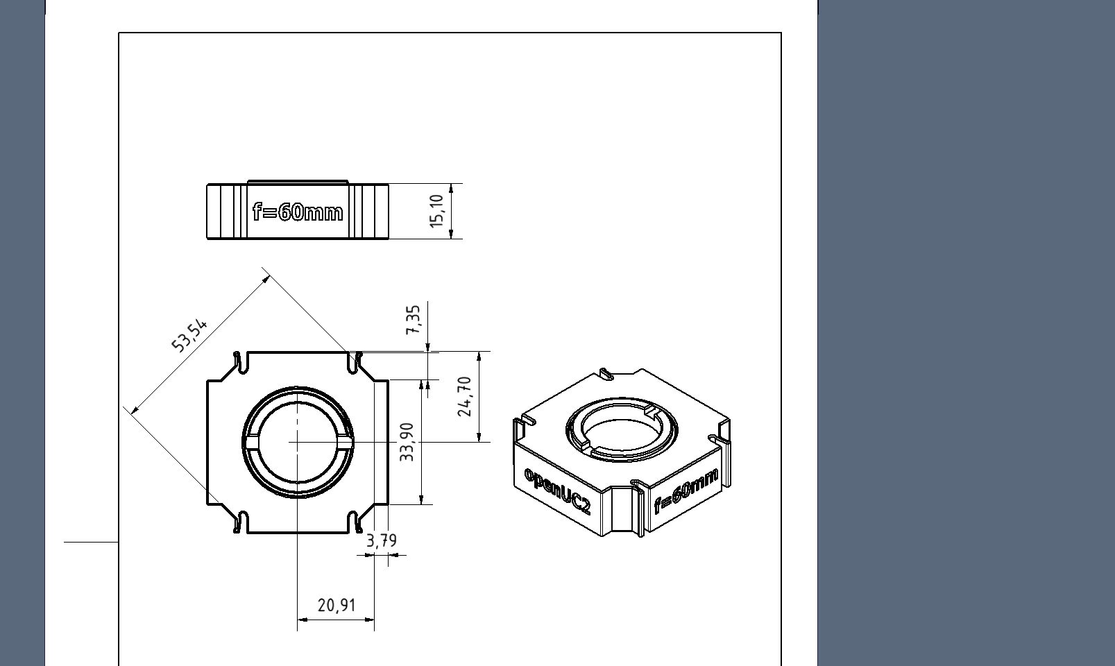 This serves as a template for your optics. Fill it with whatever you have and model it in your 3D CAD software: https://a360.co/3MYo0RX