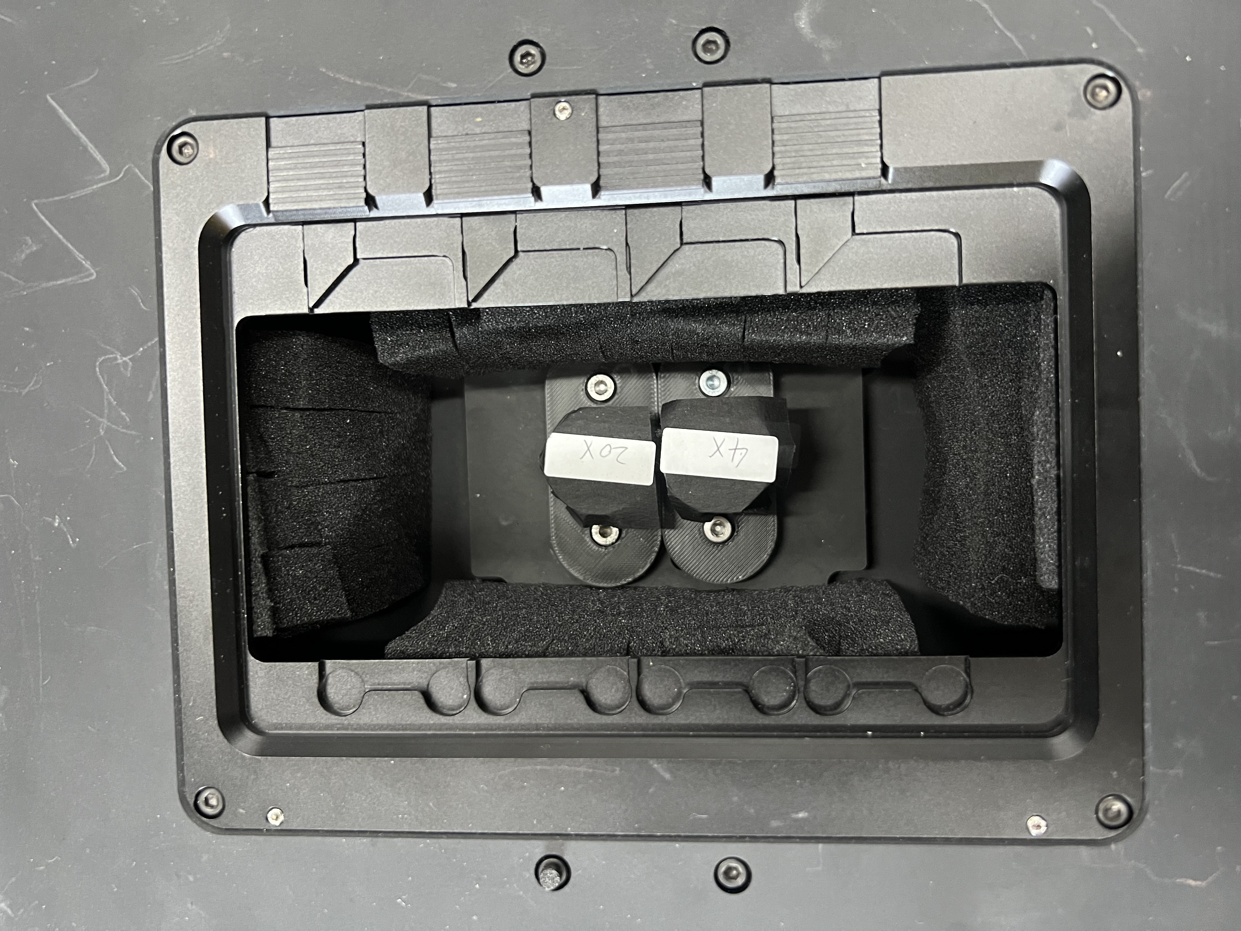 The FRAME system supports custom objective holders for specialized applications. Contact support for custom configurations.