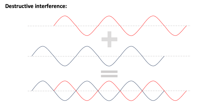 if we extend the beam splitter by to mirrors the split light is reflected back to them. the consequence that the two parts of the light unite again and form a new wave. This is called Interference.