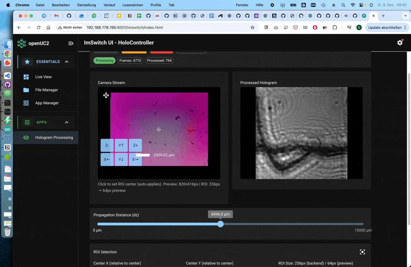 Reconstruction using the ImSwitch Inline Holography Plugin